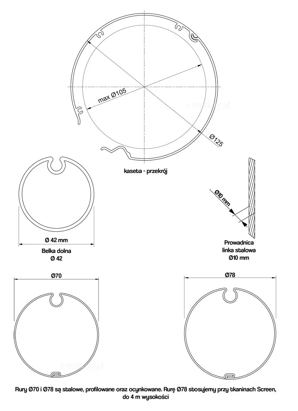 Reflexol 125 – Technische Daten – Refleksol 125 Selt, Reflexol-Komponenten, Unterbalken, Seitenabdeckung, Kabelführungen, Refleksol 125-Kassette, Querschnitt, Unterbalken, Stahlkabelführung, Refleksol 125 maximale Kompression der Federreflexol, Refleksol 125 Federhalterungen, Doppelhalterung