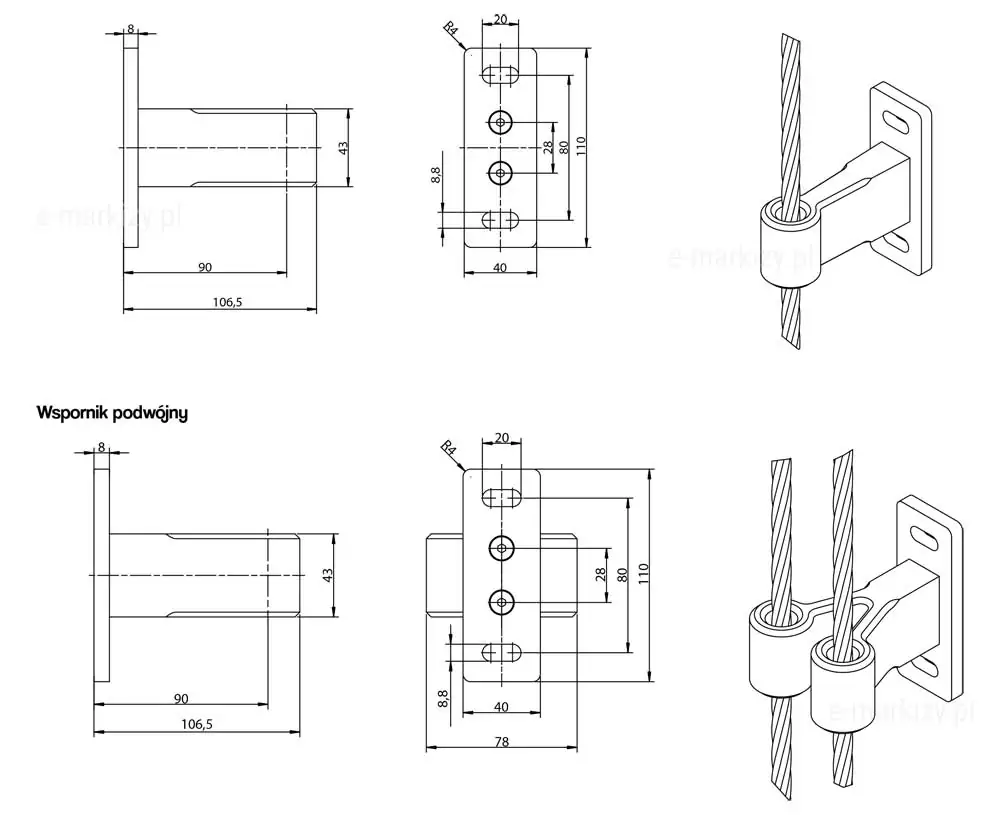 – Einfache oder doppelte (Wand-)Seilhalterungen aus Aluminium ermöglichen eine schnelle und einfache Montage des Systems