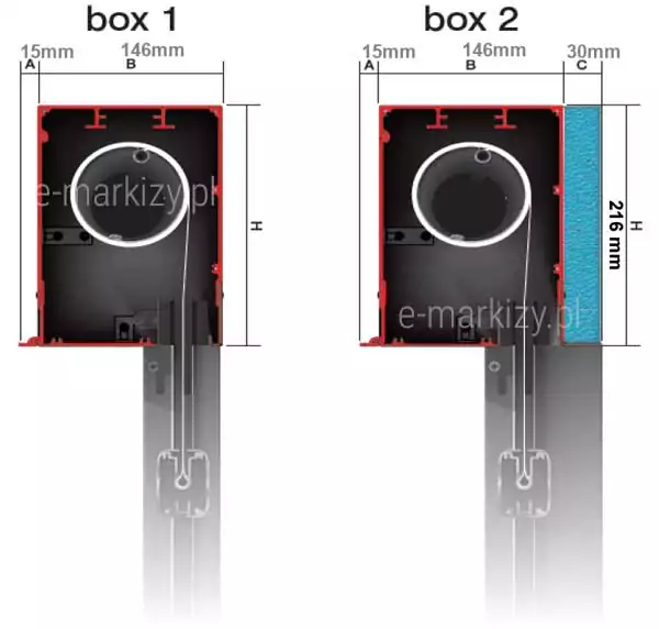 Refleksol Ziiip Box 2 – Querschnitt der Führung für Nischen- und Fenstermontage