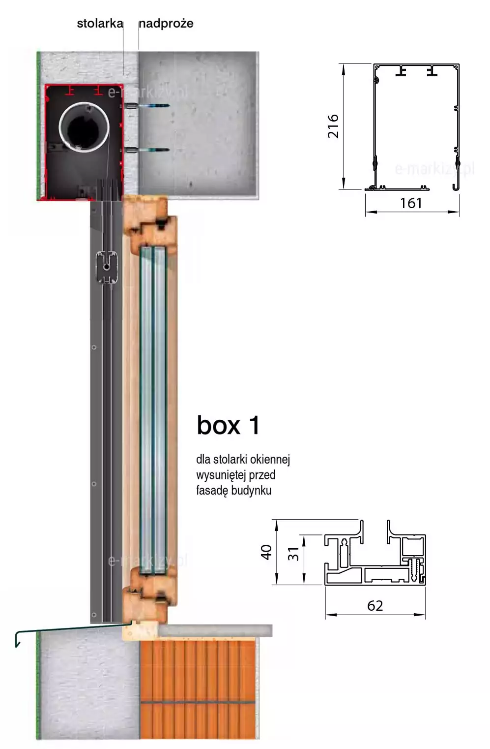 Kasten 1 – für Fensterrahmen, die vor die Gebäudefassade hinausragen