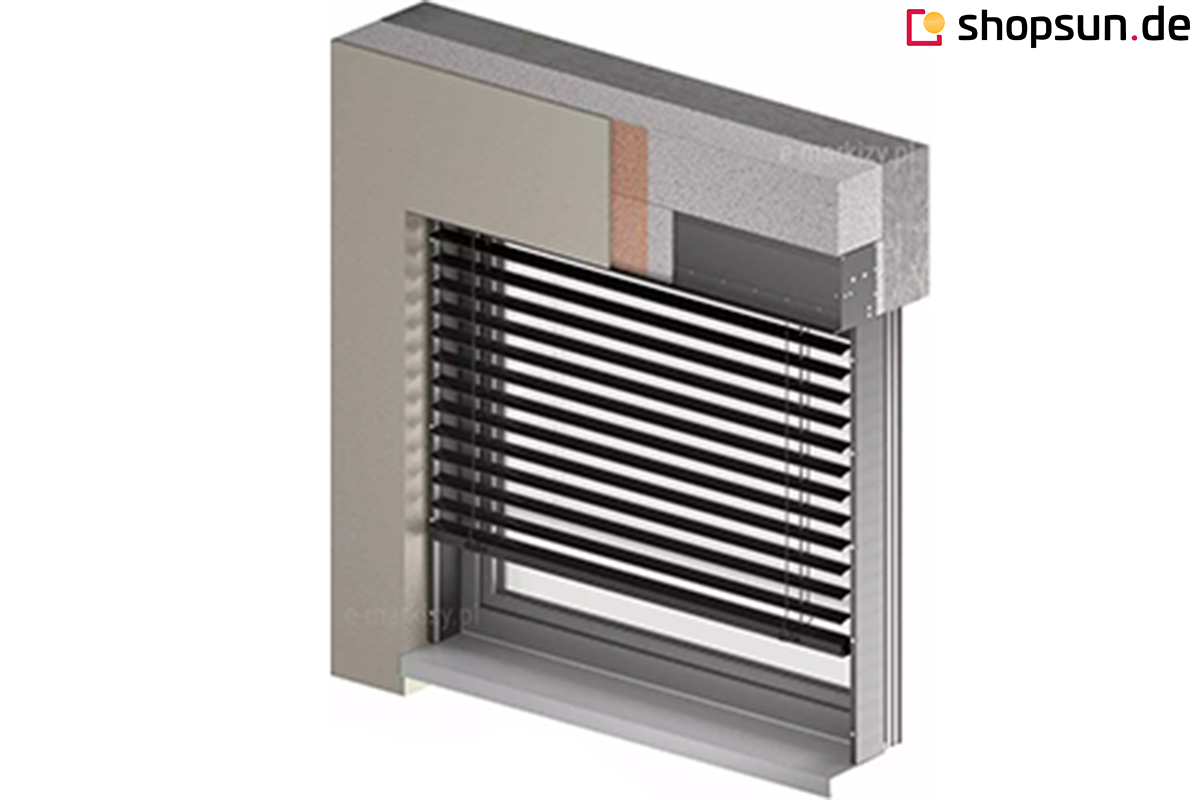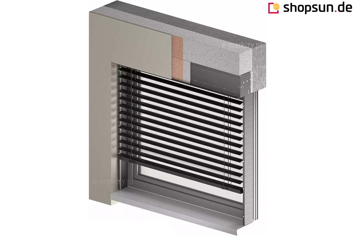 - Standardmäßig ist die Jalousie mit einem Elektroantrieb ausgestattet, gegen Aufpreis kann die Jalousie mit einem Elektromotor ausgestattet werden, der die Jalousie automatisch aufrollt und die Lamellen bewegt.