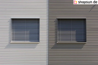 Die Lamellen der Raffstoren bestehen aus Aluminium und sind in mehreren Standardfarben pulverbeschichtet. Die Farbe der Lamellen kann in Bezug auf die Konstruktion gleich oder völlig unterschiedlich sein (dies ist nur eine individuelle Angelegenheit nach den Vorlieben des Kunden). Die Lamellen der Jalousien werden mittels spezieller Textilien (Leitern) an den Jalousien befestigt. Ihre Farbe wird automatisch an die Farbe der Lamellen angepasst. Bei Bedarf kann das Rollo mit jeder beliebigen Farbkombination der Textilien angefertigt werden (bitte geben Sie dies in den Bestellhinweisen an).