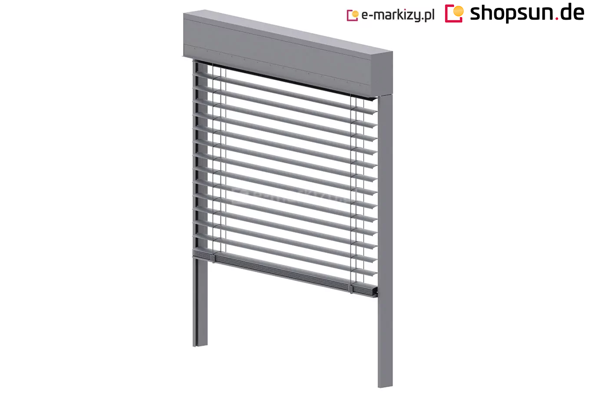 Die Raffstoren C80 BOX Selt sind moderne Fensterabdeckungen, die den Aufenthaltskomfort im Raum deutlich erhöhen. Sie schützen nicht nur vor neugierigen Blicken und verdunkeln den Innenraum, sondern eliminieren auch unerwünschte Lichtreflexionen. Bei umfassender Anwendung reduziert die Raffstoren die Erwärmung des Hausinneren deutlich, indem sie die Sonnenstrahlen reflektiert und die Luft kühl hält. Jalousien reduzieren das Eindringen von Lärm in das Gebäude erheblich. Die Konstruktion des Produkts und des Antriebs ermöglicht es, den Vorhang in jeder Höhe im Auf-Ab-Arbeitsbereich sicher zu stoppen und dort im schwebenden Zustand zu verbleiben