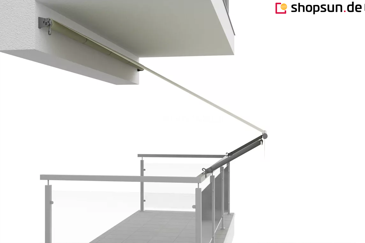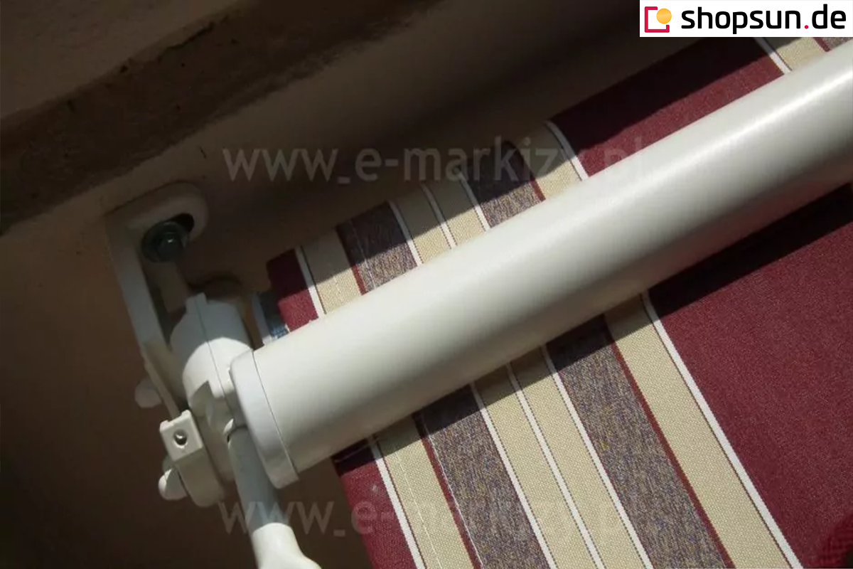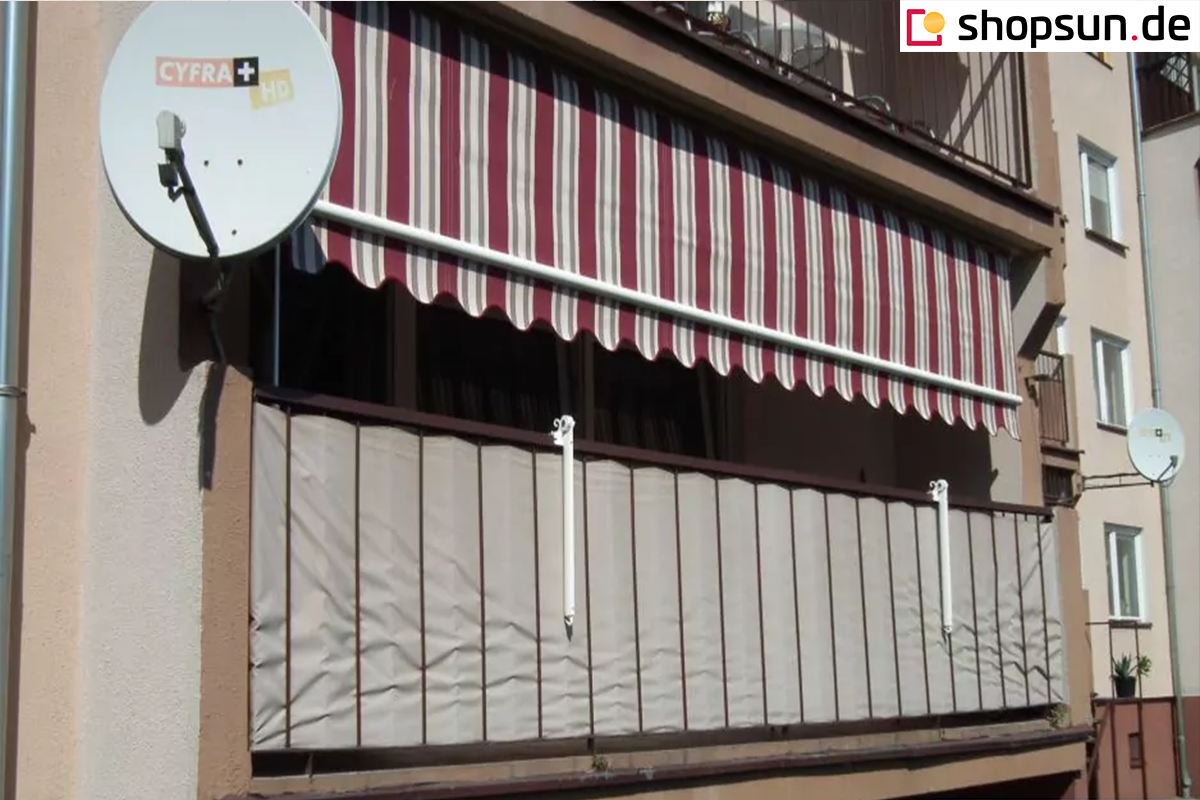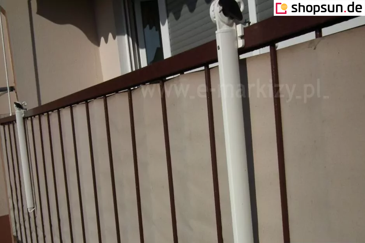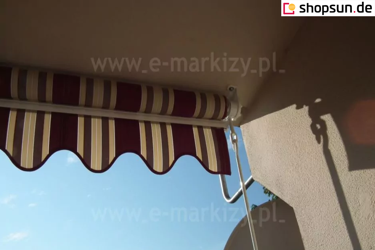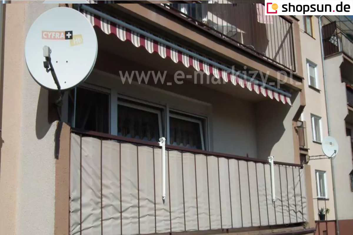 An den Enden und an der Basis der Arme befinden sich Haken, an denen der vordere Balken mit dem Stoff befestigt wird. Die richtige Spannung der Markise wird durch Aufrollen des überschüssigen Tuchs erreicht. Die Geländer-Balkonmarkise ist die am häufigsten gewählte Balkonüberdachung.