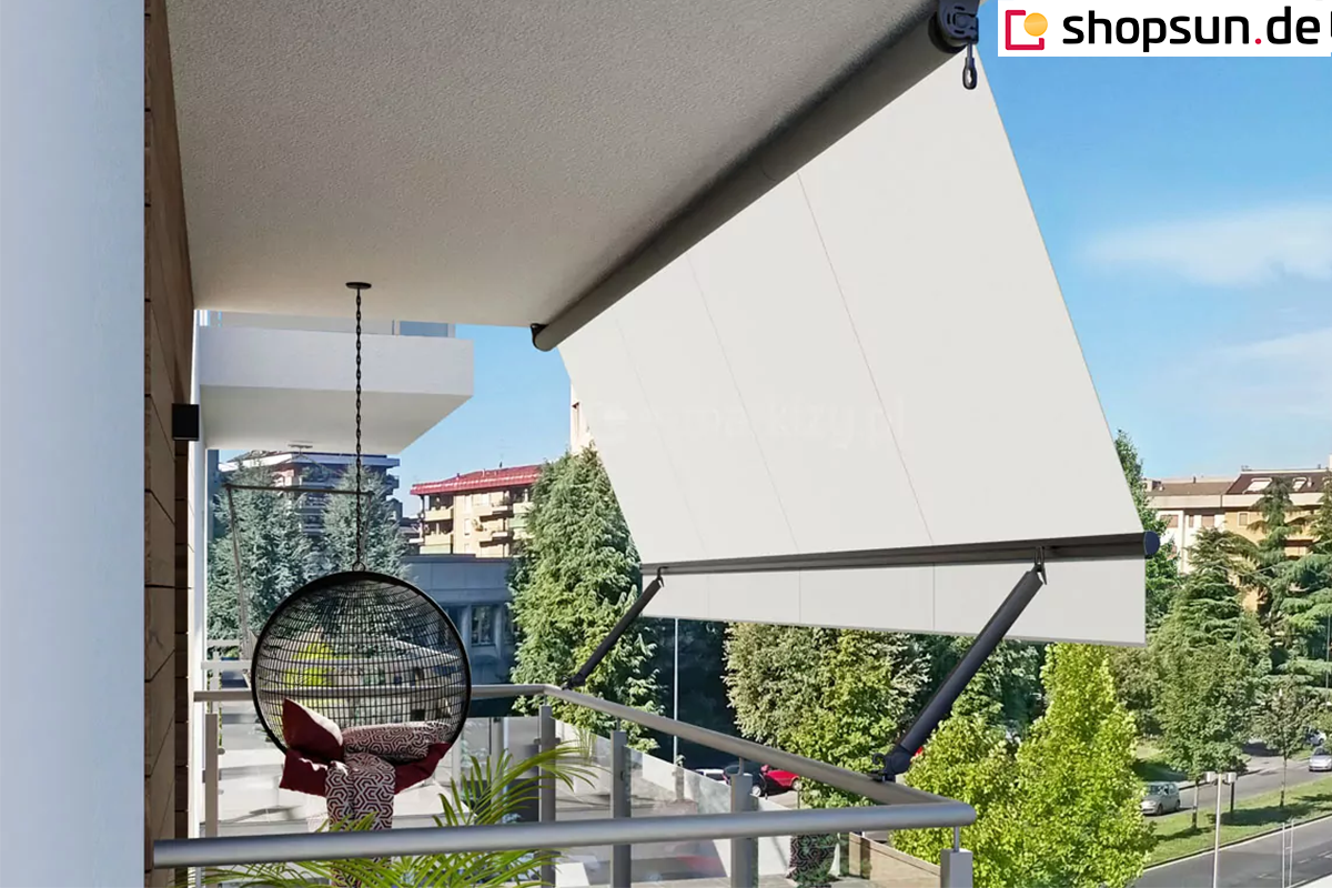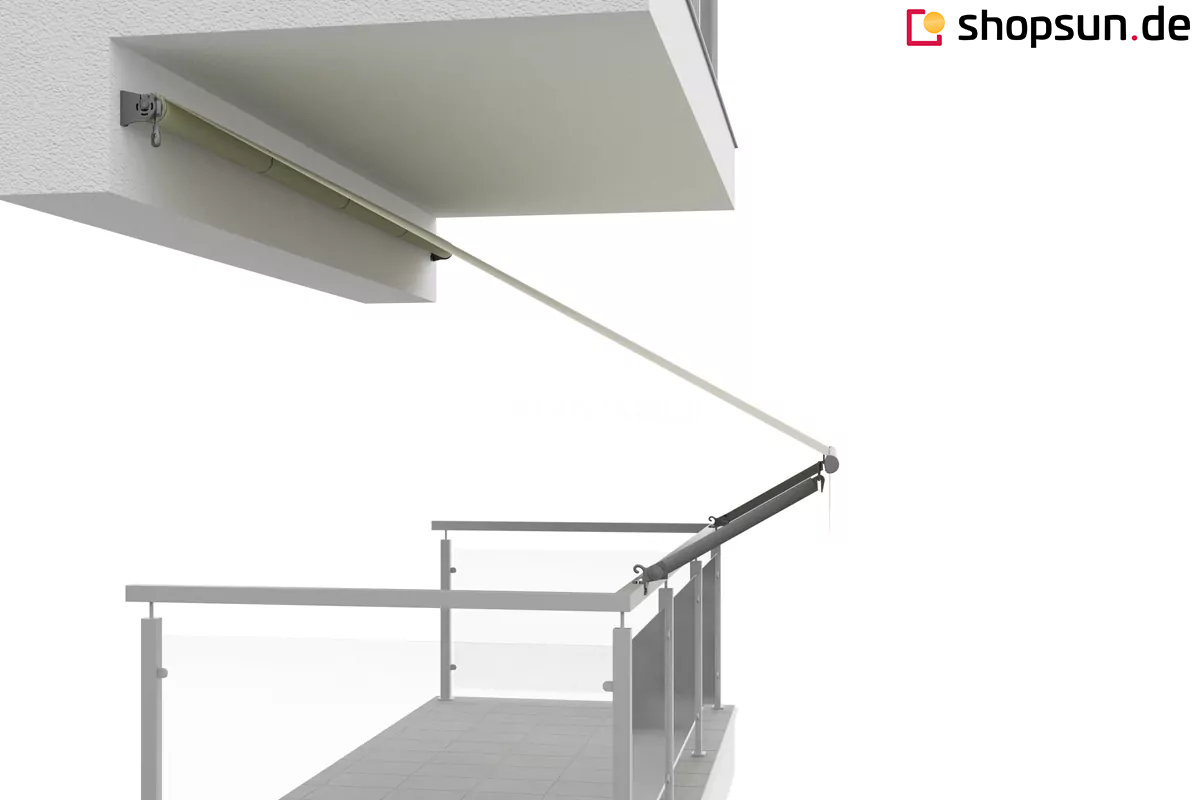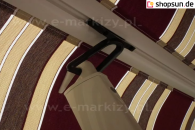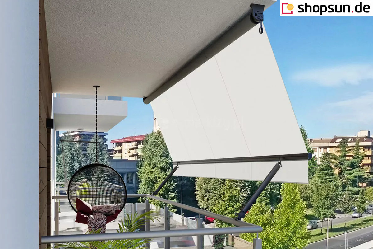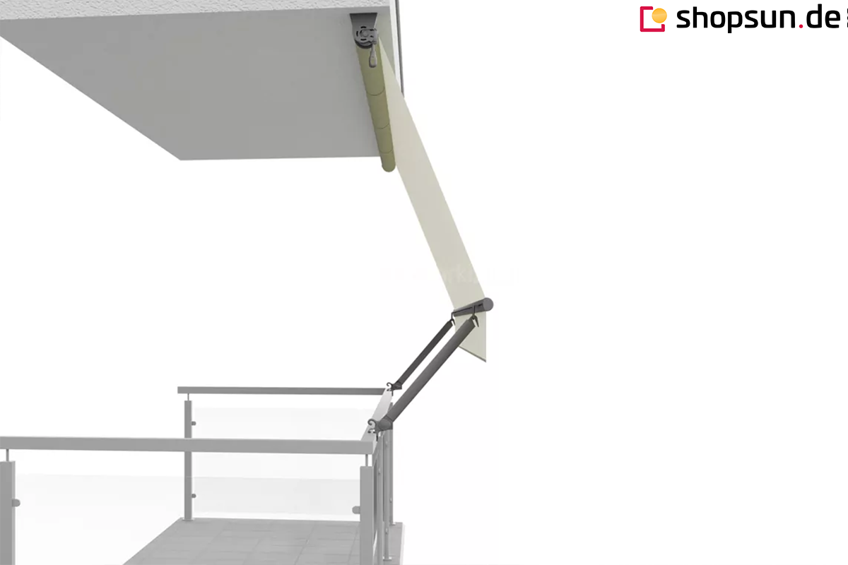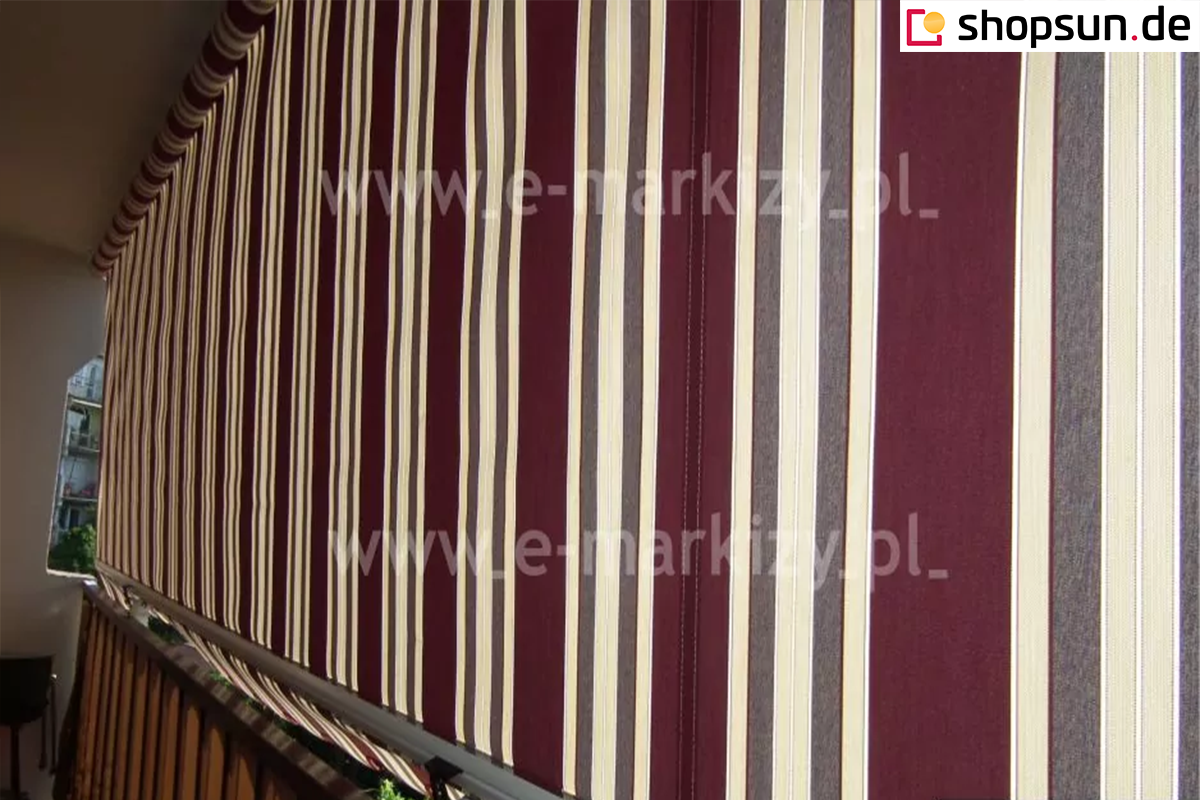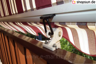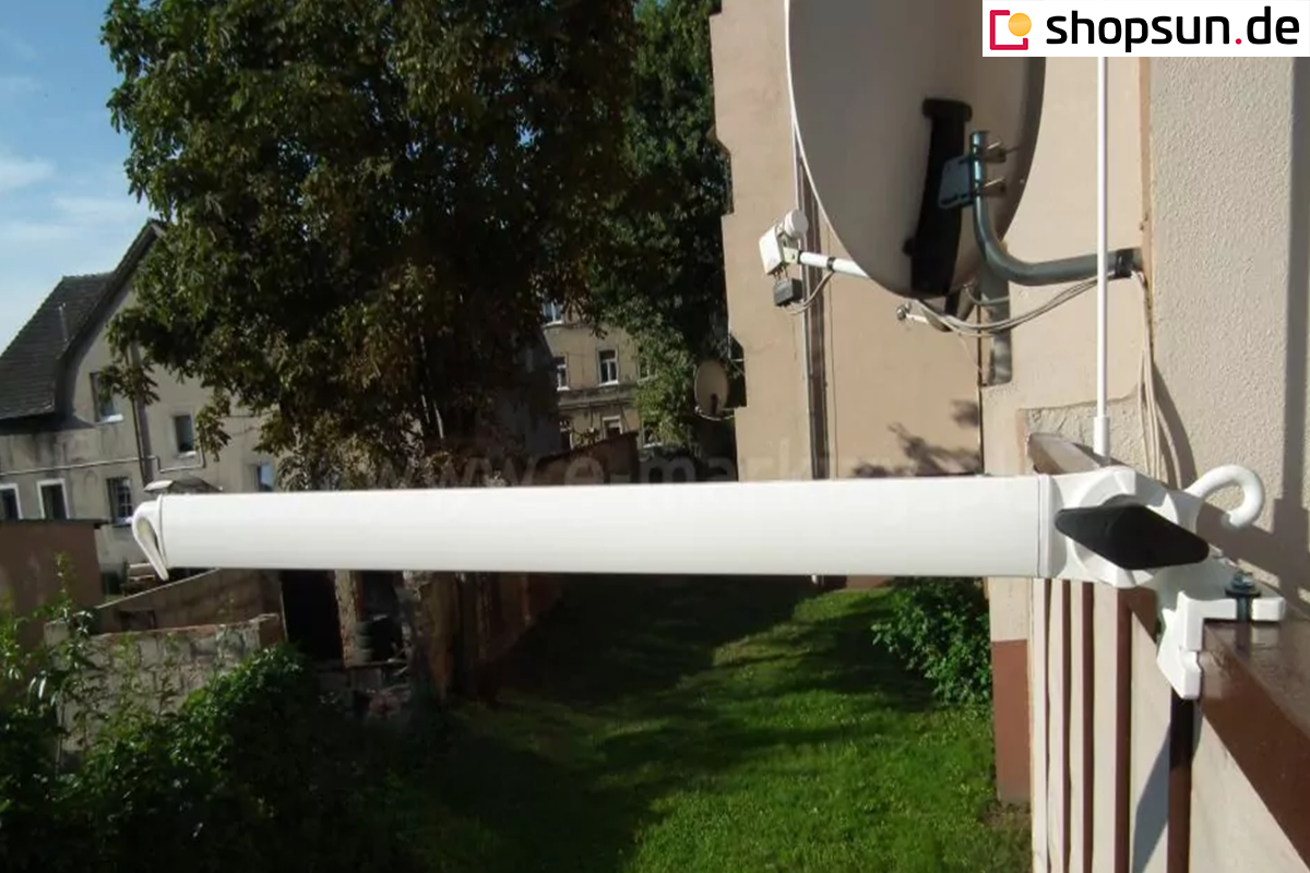 An den Enden und an der Basis der Arme befinden sich Haken, an denen der vordere Balken mit dem Stoff befestigt wird. Die richtige Spannung der Markise wird durch Aufrollen des überschüssigen Tuchs erreicht. Die Geländer-Balkonmarkise ist die am häufigsten gewählte Balkonüberdachung.