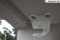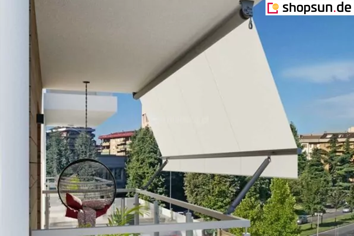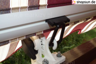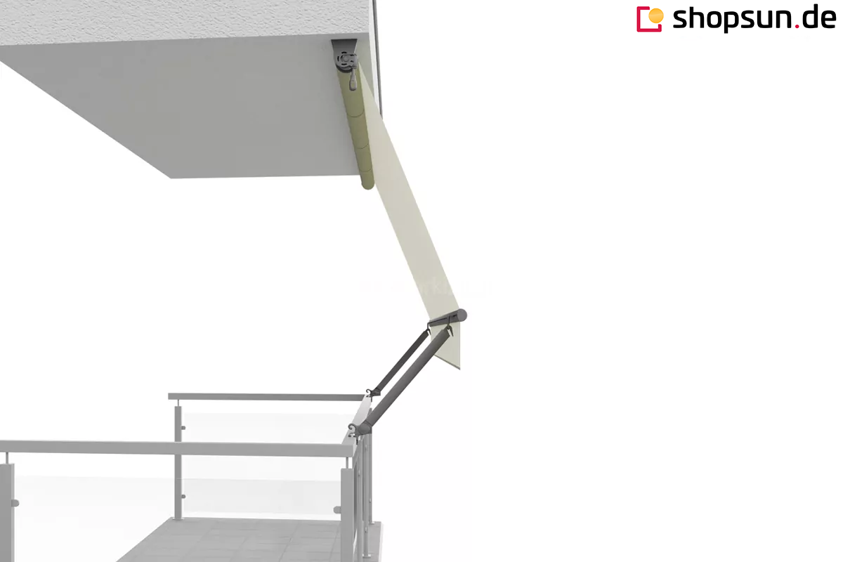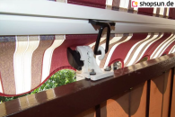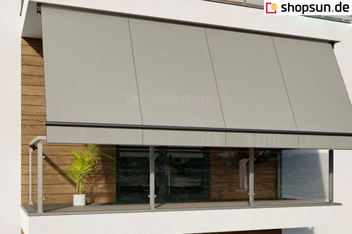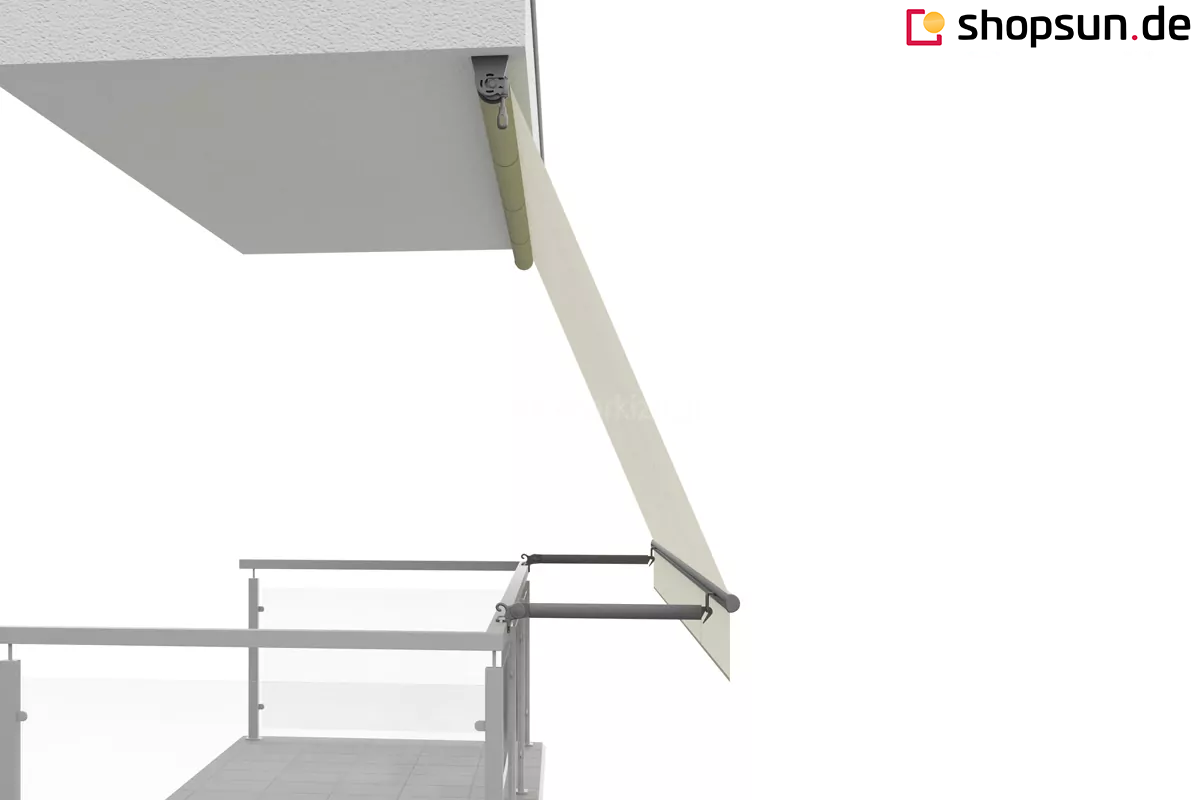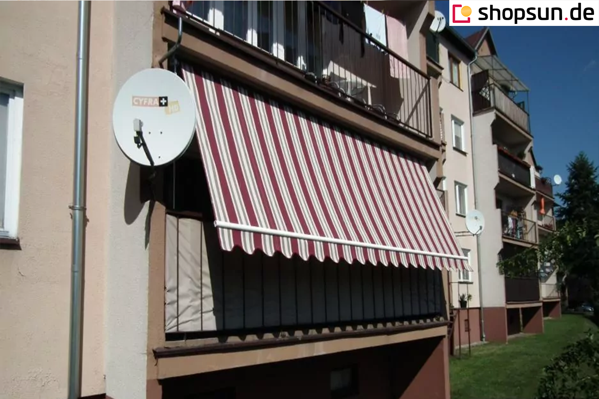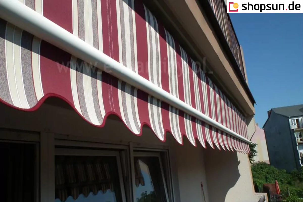 An den Enden und an der Basis der Arme befinden sich Haken, an denen der vordere Balken mit dem Stoff befestigt wird. Die richtige Spannung der Markise wird durch Aufrollen des überschüssigen Tuchs erreicht. Die Geländer-Balkonmarkise ist die am häufigsten gewählte Balkonüberdachung.