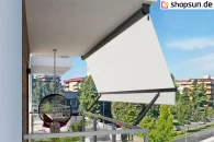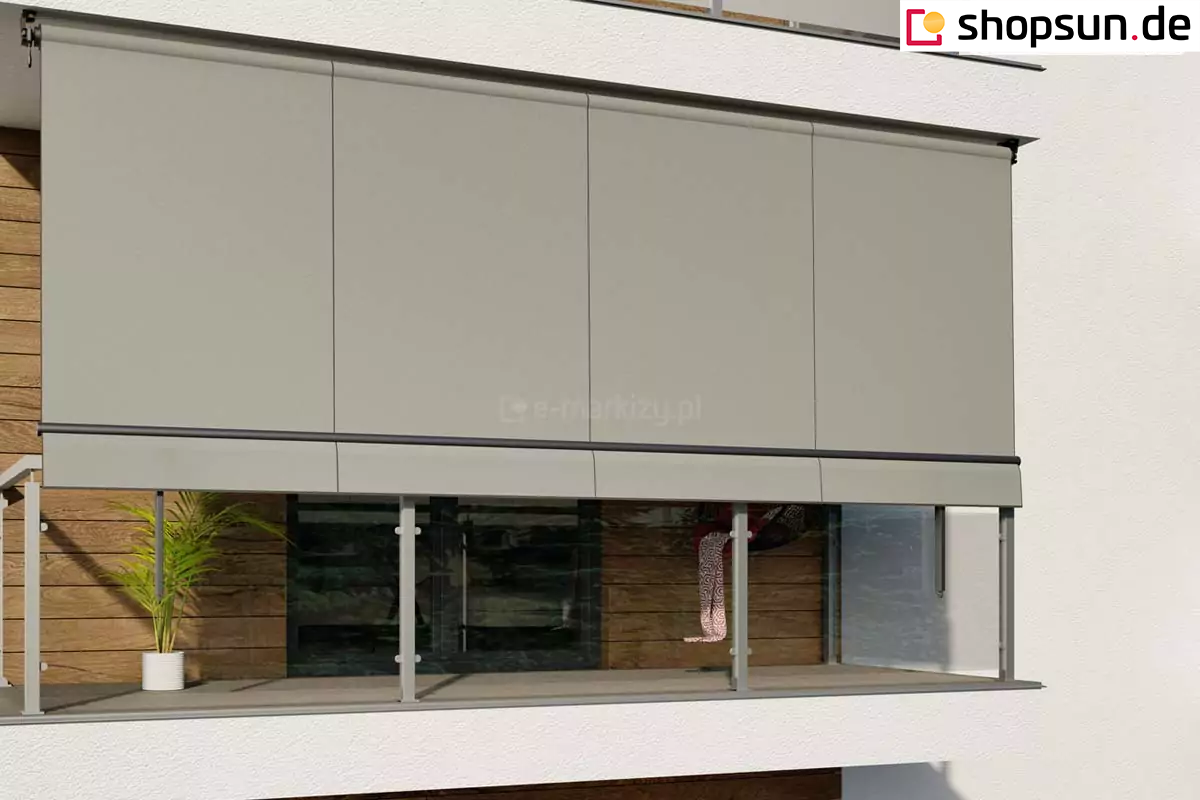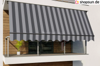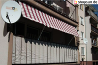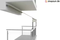 Die Leichtigkeit der Markise in Kombination mit den Geländerbefestigungen ermöglicht die Herstellung in der Größe von Standardbalkonen. Die maximale Breite beträgt 5 m und die Ausladung 0,7 m.