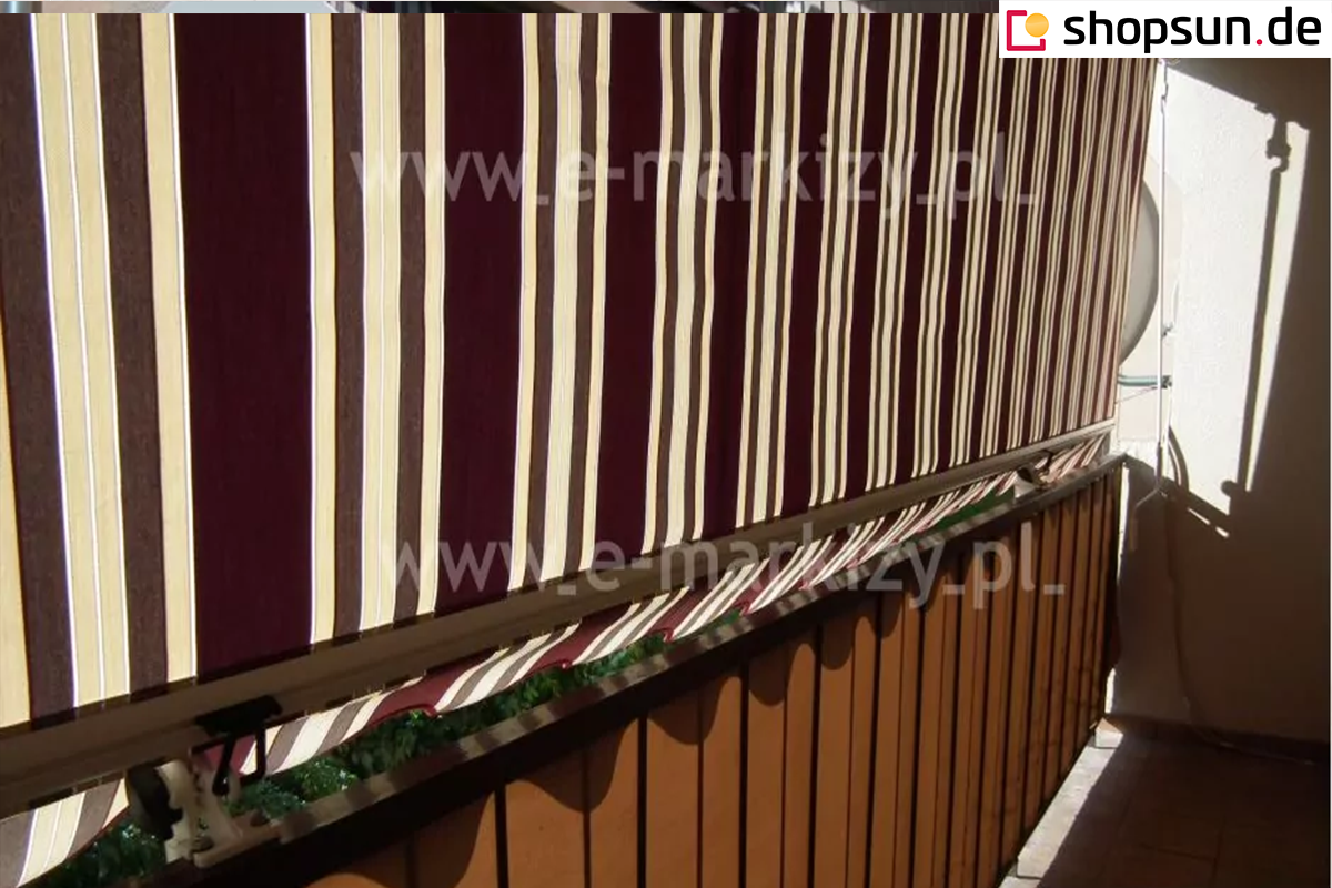 Fallarmmarkise Italia balkon mit Geländerarmen ist ein ästhetischer Sonnenschutz. Die Handlauf-Balkonmarkise ist eine praktische Dekoration für Balkone, Terrassen und Balkonnischen. Die Verwendung von Balustradenarmen bietet eine größere Montagefreiheit auf Balkonen.