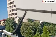 Die Geländer-Balkonmarkise ist mit Armen ausgestattet, die am Geländer befestigt werden. Standardmäßig haben wir 1 Armlänge (70cm). Die Länge des auf der Markisenwelle aufgewickelten Tuches beträgt ca. 219 cm. Wir können die Markise in verschiedenen Winkeln einstellen oder die sogenannten machen. vertikale Verdunkelung