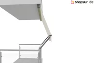 Das Selt Handrail Italia hat die für diese Markise charakteristischen Arme und wird am Balkongeländer befestigt. Ihr Design ermöglicht es Ihnen, den passenden Neigungswinkel einzustellen.