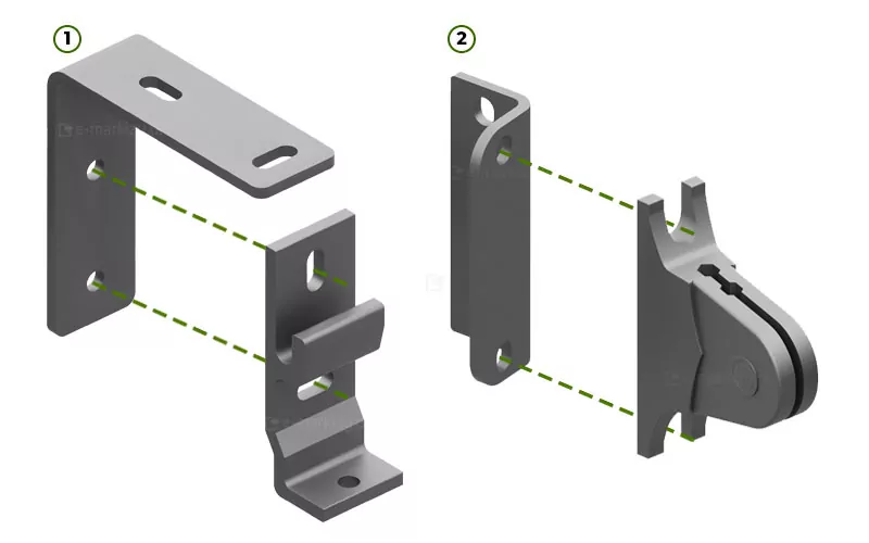 1. Wand- und Deckenhalterung verbinden