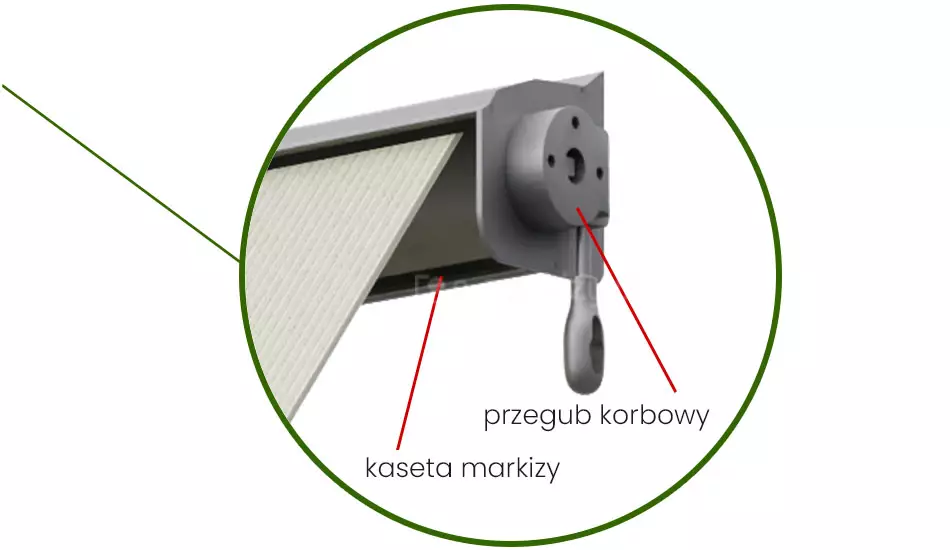 Durch Drehen der Kurbel nach rechts oder links rollen wir die Markise auf bzw. auf. Zusätzlich können wir einen elektrischen Antrieb mit Sensoren einbauen