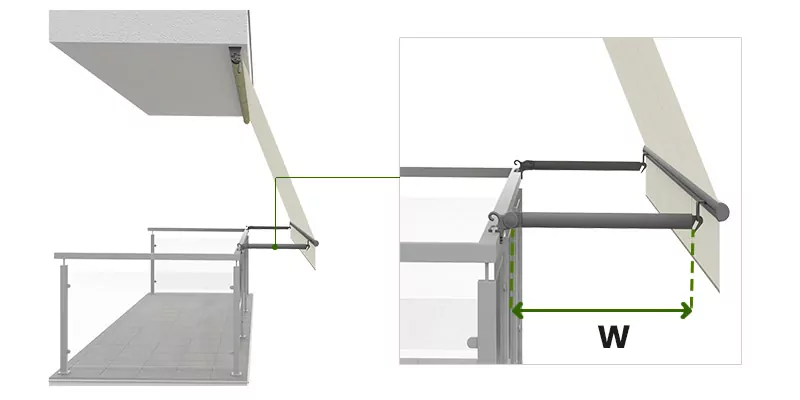 Abmessung einer Balkonmarkise mit Relingarmen