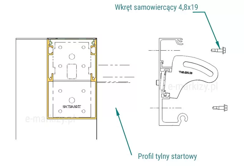 Das hintere Startprofil sollte mit 4,8×19 Schrauben am hinteren Träger befestigt werden