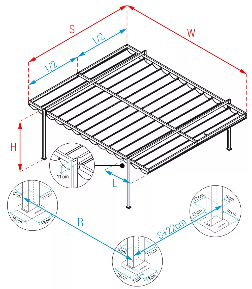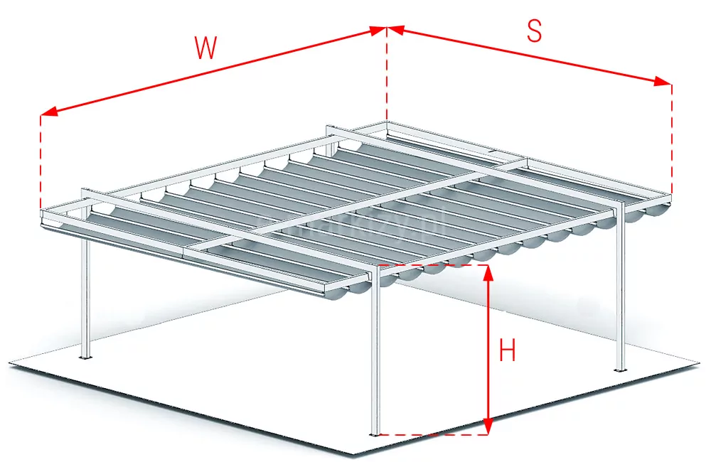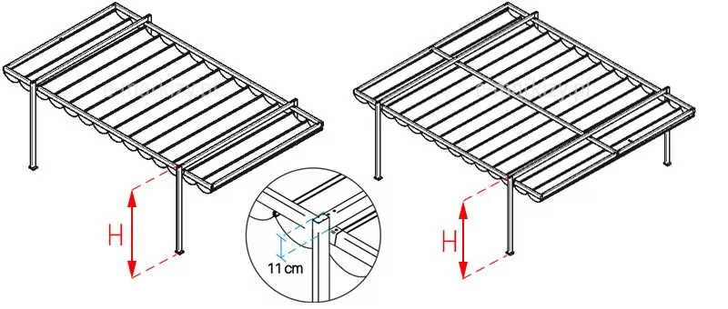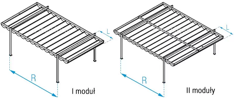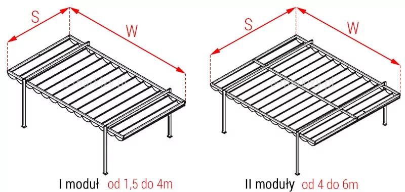 – Zwei Pergolamodule (von 400 cm bis 600 cm breit)
