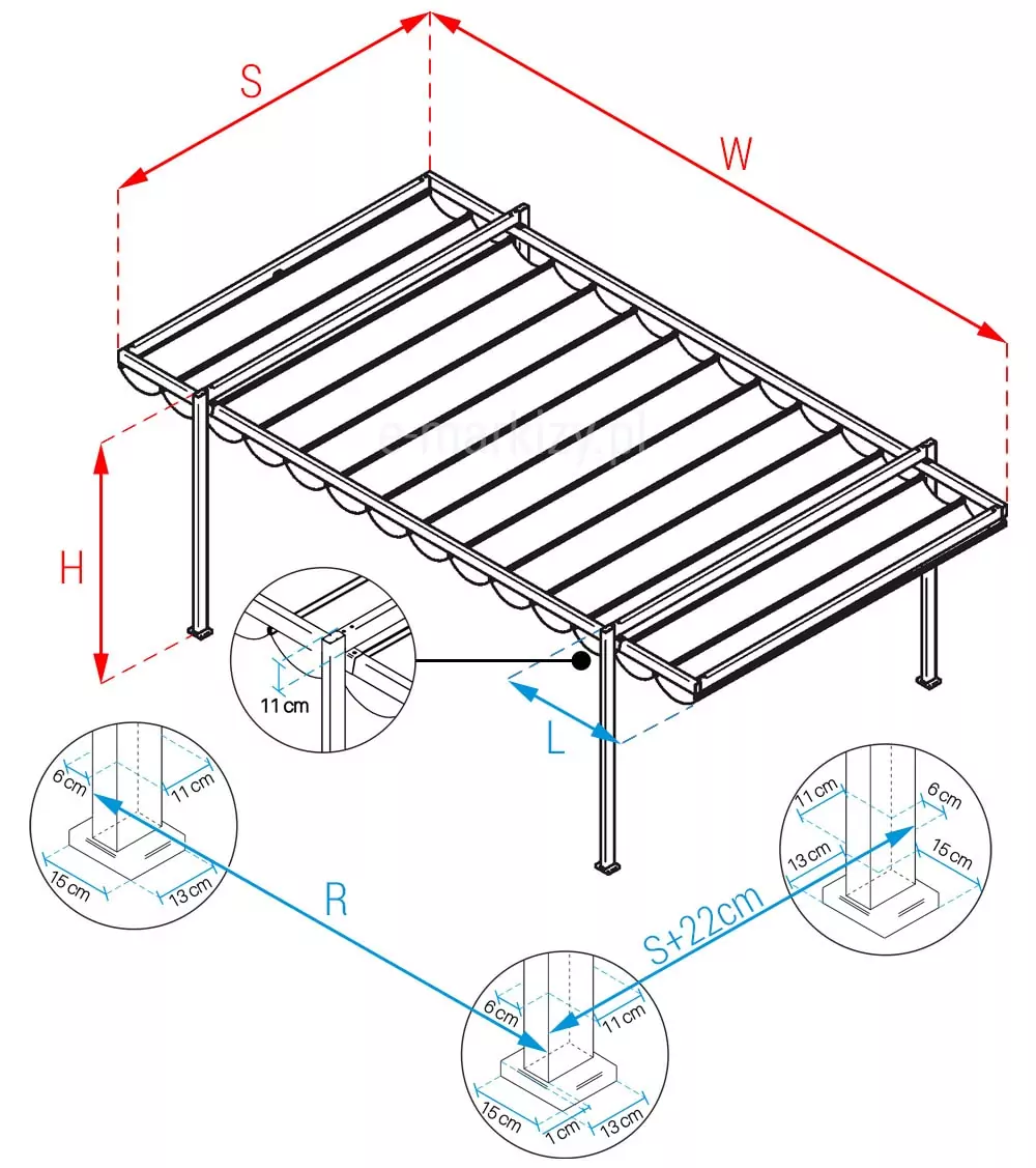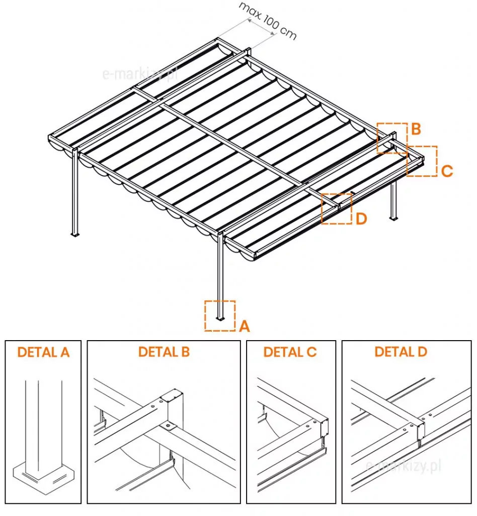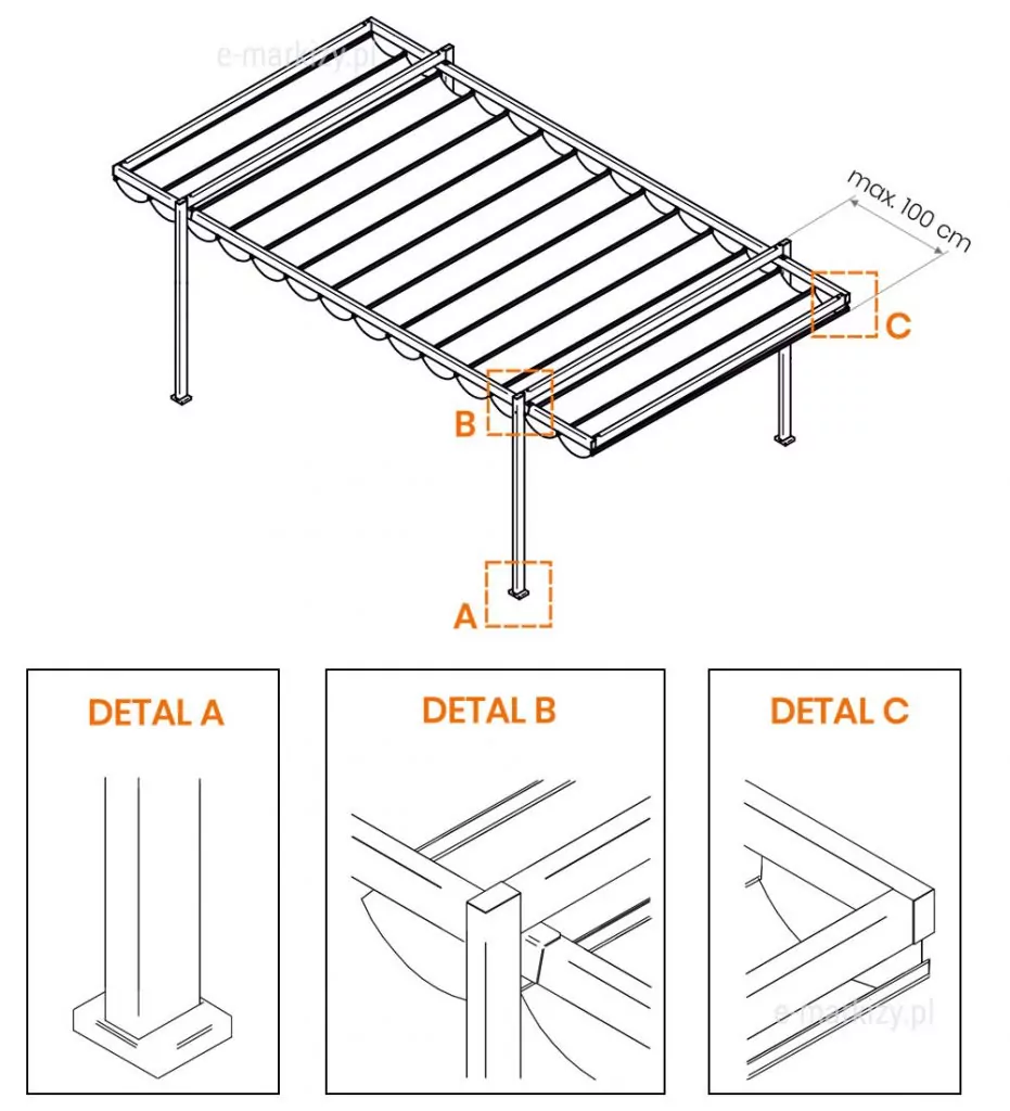 – Ein Pergolamodul (bis zu 400 cm breit)