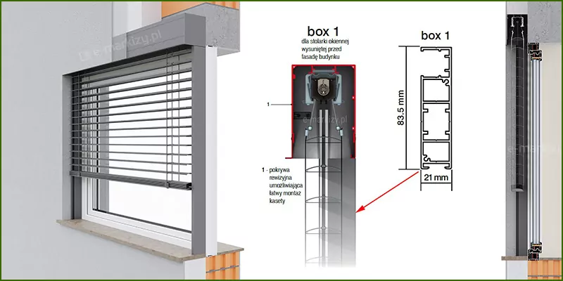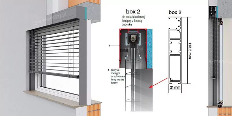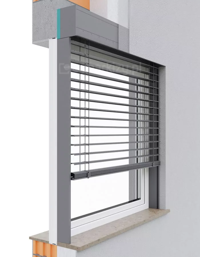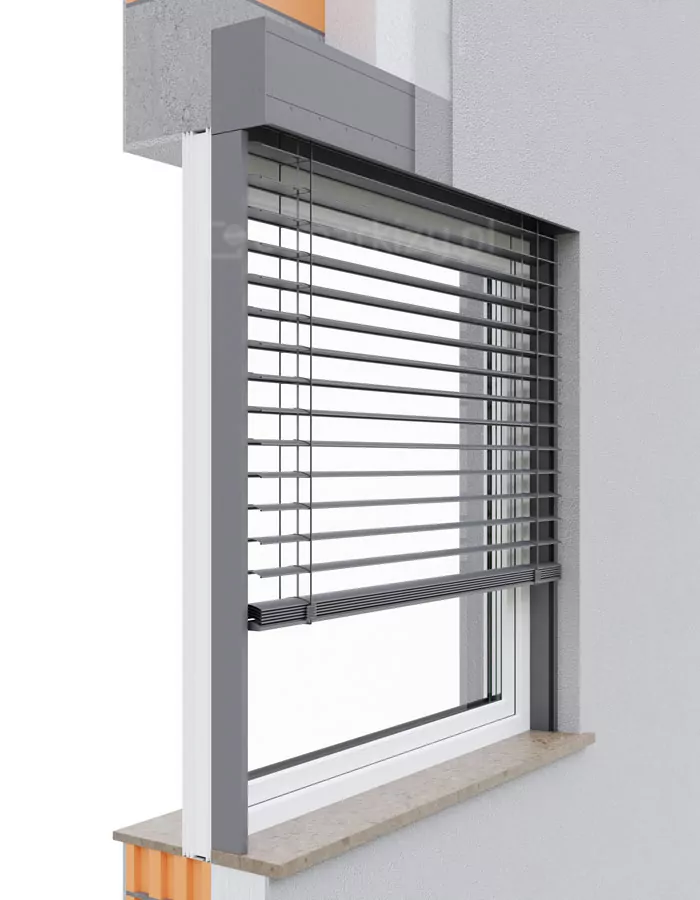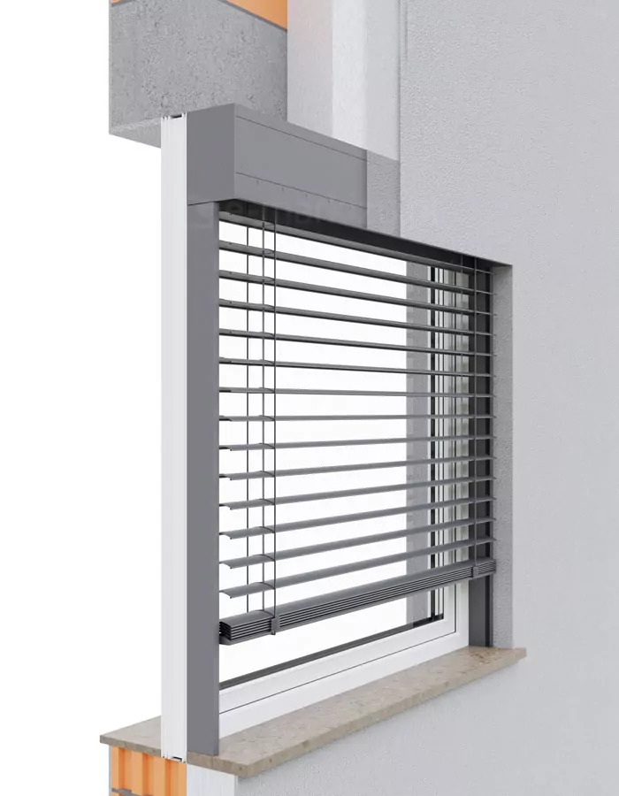 Die Raffstoren C80 Box Selt ist für die Unterputzmontage konzipiert, besteht aus stranggepresstem Aluminium und verfügt über eine Inspektionsabdeckung für einfachen Zugang und Einbau. Alle Lamellen sind auf beiden Seiten nach innen profiliert, was ihnen eine erhöhte Steifigkeit verleiht, und durch die stufenlose Steuerung des Neigungswinkels der Lamellen können Sie die Lichtintensität stufenlos einstellen.