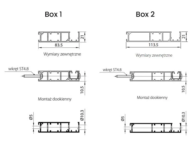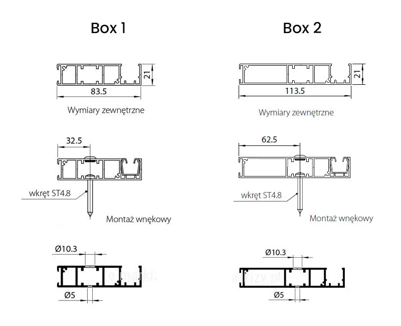 1. Box 1 (kein Platz für Isolierung, schmalere Führung)