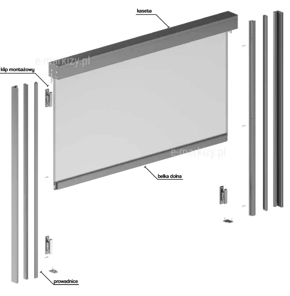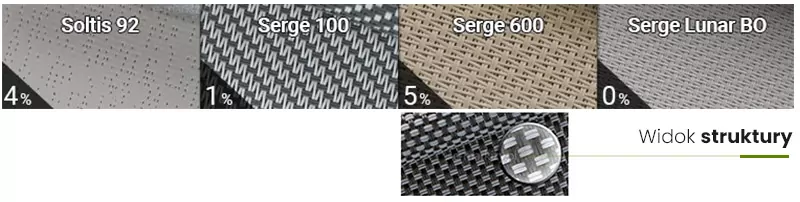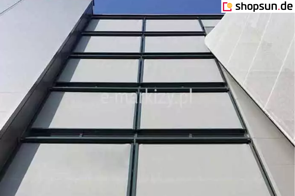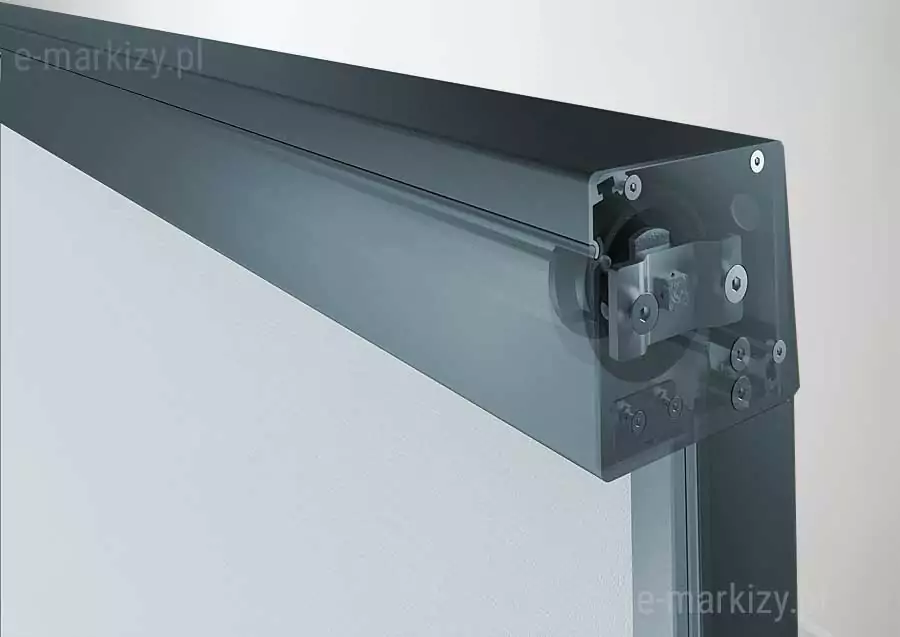 Eine große Auswahl an Stoffen ermöglicht es Ihnen, die Farbe des Rollos an die Architektur des Gebäudes anzupassen und den passenden Sonneneinstrahlungskoeffizienten auszuwählen. Das System ist mit einem Tuchspannsystem ausgestattet, das seine Spannung auch auf großen Flächen hält. Acrylstoffe sind eine Kollektion, die hauptsächlich in Markisen verwendet wird. Screen-Stoffe sind eine Kombination aus PVC und Polyester, je nach ausgewählter Gruppe haben sie unterschiedliche Eigenschaften, wie Licht- oder Schalldurchlässigkeit.