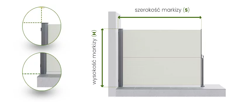 Geben Sie unten die Maße in cm auf eine Dezimalstelle genau an. Sehen Sie sich unbedingt die Messanleitung für Jalousien an, bevor Sie die Maße angeben. Für eine Bestellung oder ein Angebot geben wir immer den gesamten Ausfall der Markise an. Der Ausfall ist der Grad der Ausrollung der Markise. Die maximale Höhe beträgt 200 cm. Jede Markise hat ihre maximalen Konstruktionsmaße, daher kann es in einigen Fällen vorkommen, dass es nicht möglich ist, eine Markise in den gewünschten Maßen zu bestellen. Die maximalen Maße sind: Breite 400 cm | Höhe 200 cm
