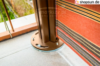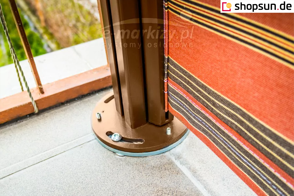 Standardmäßig kann die Seitenmarkise auf drei Arten befestigt werden. Variante 1: Vorderpfosten - Montage auf hartem Untergrund. Variante 2: Vorderpfosten - Montage auf weichem Untergrund. Variante 3: Halterung zur Wandmontage. Jede Variante ermöglicht eine sichere und schnelle Befestigung des vorderen Balkens in der Halterung. Klicken Sie auf die Links nebenan, um weitere Informationen und Bilder zu sehen.