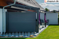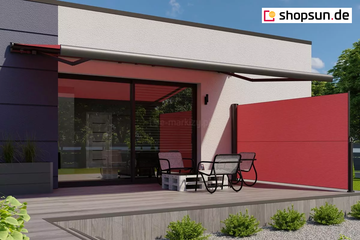 Die Seitenmarkise Bora Selt ist eine Seitenmarkise zur Montage auf Balkonen, Terrassen oder als zusätzliche Abdeckung für Terrassenmarkisen und Pergolen. Zum Schutz vor Sonnenstrahlen, Windböen und neugierigen Blicken von Nachbarn oder Passanten.