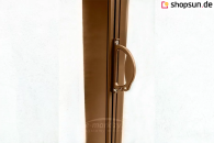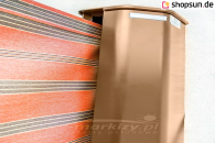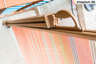 Das spezielle Design ermöglicht eine einfache Installation auf jeder Oberfläche. Das Design mit eingebauter Feder sorgt dafür, dass der Stoff während des gesamten Gebrauchs gleichmäßig gespannt ist. Diese Markise lässt sich schnell zusammenfalten, indem man sie von der Zugstange löst und in die Kassette einrollt. Die Konstruktion des Systems besteht aus stranggepresstem Aluminium, was die Haltbarkeit und Festigkeit der Markise gewährleistet. Der Geländerhalter der bora-Abdeckung beinhaltet ein Winkelstabelement und einen Haken und verfügt über eine Winkelarretierung.