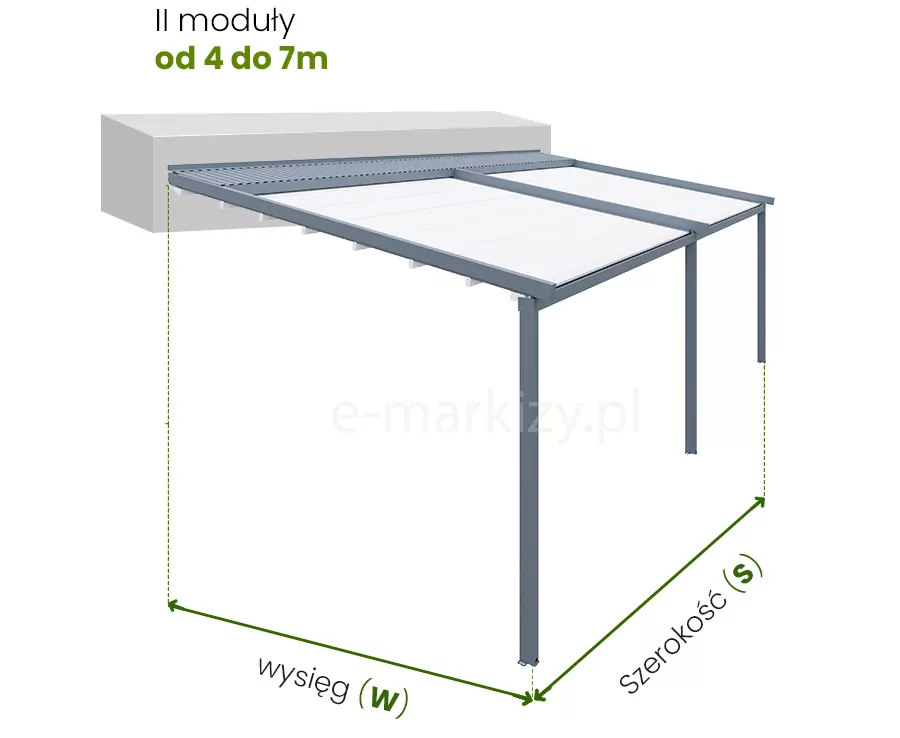 Wybrano wymiary dla pergoli o 2 modułach