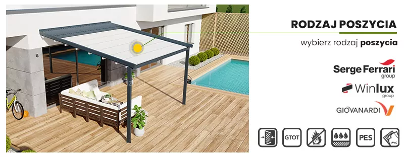 W tym modelu, możemy wybrać bez dopłaty 3 kolory belek tkaniny pergoli.