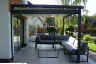 Standardowo pergola wyposażona jest w napęd ręczny, czyli sterowana jest korbą