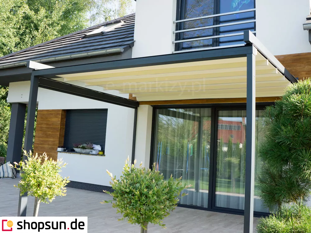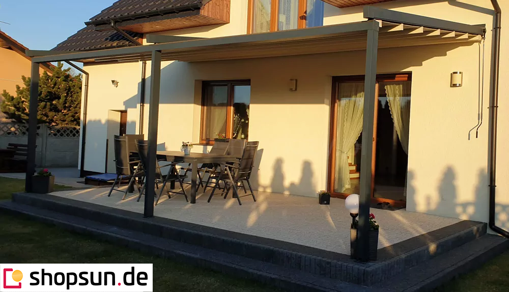 Die Pergola kann mit vielen Zusatzoptionen ausgestattet werden. Um mehr zu sehen und zusätzliche Optionen zu bepreisen, konfigurieren Sie Ihre Terrassenüberdachung.